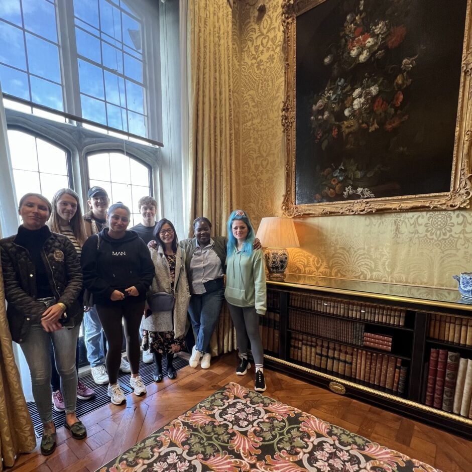 However, satin, while undeniably opulent, is a fabric known for its delicacy and suitability for occasional use rather than frequent use in furniture. Recognising this, the chair underwent re-covering in 1967 with a cream and blue fabric, meticulously selected at the time of its acquisition. More recently, in 2020/2021, the chair underwent an urgent conservation treatment. As part of an extensive conservation project focused on the preservation of Lady Baillie’s private rooms, including her dressing room and mesmerising blue bedroom, this chair’s restoration played a critical role. The project itself was brought to life by the vision of Stéphane Boudin, renowned as “the greatest decorator in the world,” infusing Lady Baillie’s personal space with timeless elegance.