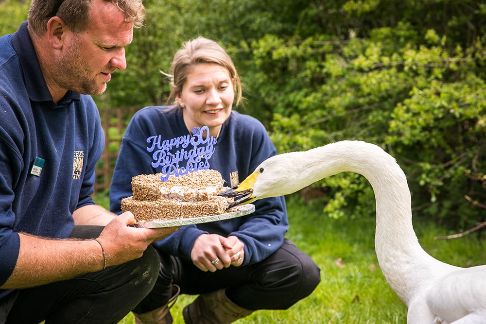 Pickles has enjoyed his very own birthday swan food cake with his feathered friends, however due to the ongoing Avian Influenza (bird flu) regulations all of Leeds Castle’s captive Swans, including Pickles, are being kept in a secure pen away from our visitors. We hope to have them back out on the waterways soon and plan to celebrate Pickles’ 30th Birthday in style with a big celebration later this year.