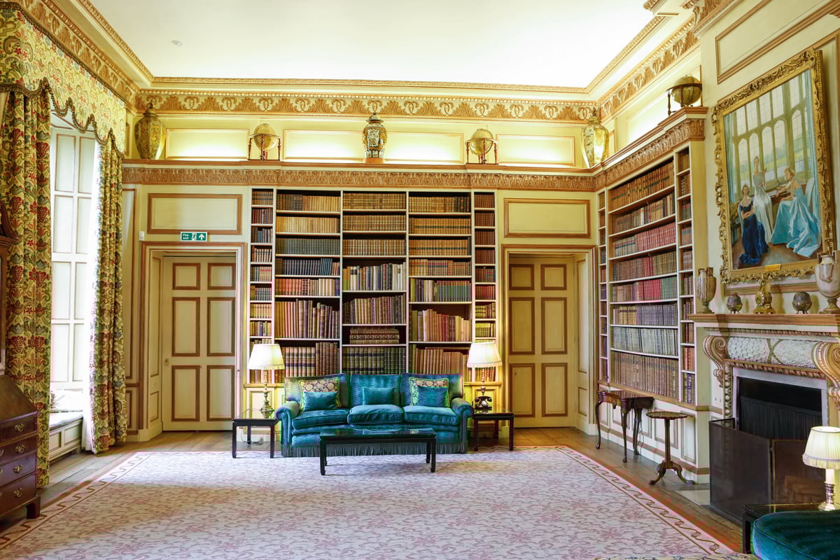 With cream and ochre tones, the decorative scheme of the Library is now beautifully harmonised with the neighboring Dining Room, which was restored in 2015 during the same restoration project.